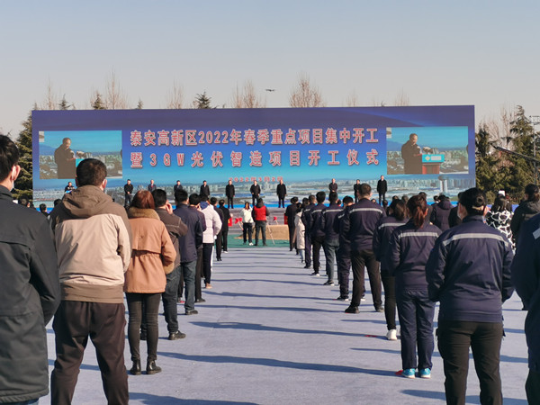 3月2日上午,泰安高新區(qū)2022年春季重點(diǎn)項(xiàng)目集中開工暨年產(chǎn)3GW太陽(yáng)能光伏智造項(xiàng)目開工儀式正式召開,開工儀式由高新區(qū)黨工委書記、管委會(huì)主任劉斌主持,市領(lǐng)導(dǎo)楊洪濤、常緒擴(kuò)、張穎、宋洪銀及范福順、李勇參加。我公司英大電力裝備有限公司總經(jīng)理徐勇應(yīng)邀出席。