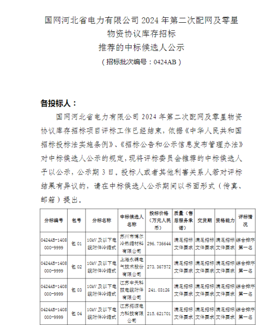 祝賀我公司中標國網(wǎng)河北省電力有限公司 2024年第二次配網(wǎng)及零星物資協(xié)議庫存招標項目